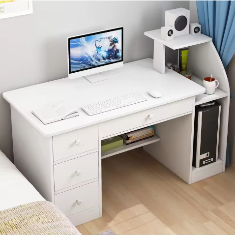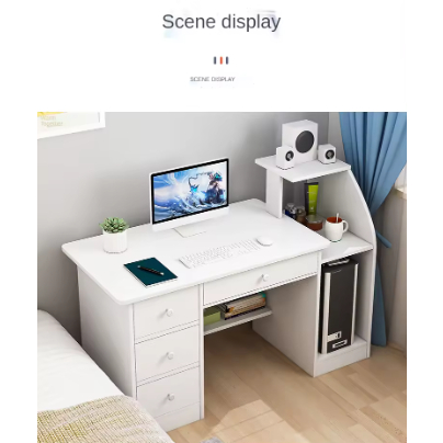 Public 100-120cm Computer Table With Shelves And Drawers Simple Desktop Home Study For Students Or Office Work
