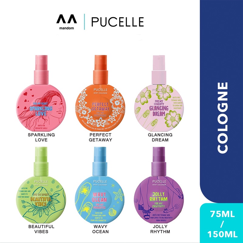 Pucelle Mist Cologne 150ml Perfume Long Lasting Perfect Getaway /Wavy Ocean /Beautiful Vibes /Sparking Love /Glancing