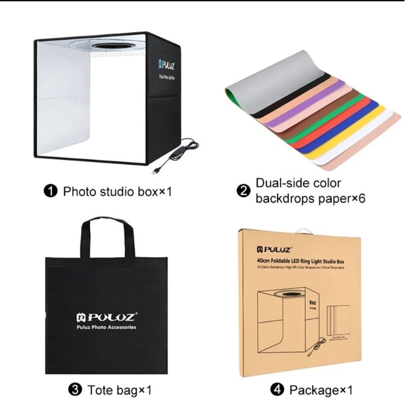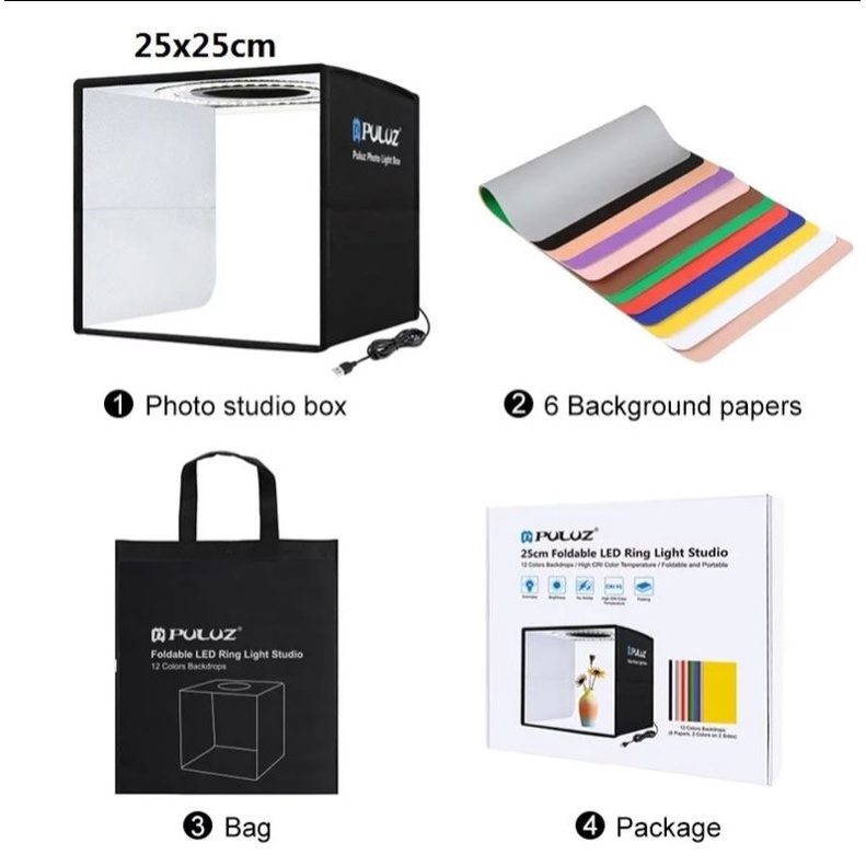 Puluz Mini Photo Studio Lightbox 3 Model Led Light Photography Softbox Folding Shooting Tent Box Kit & 6/12 Backdrops