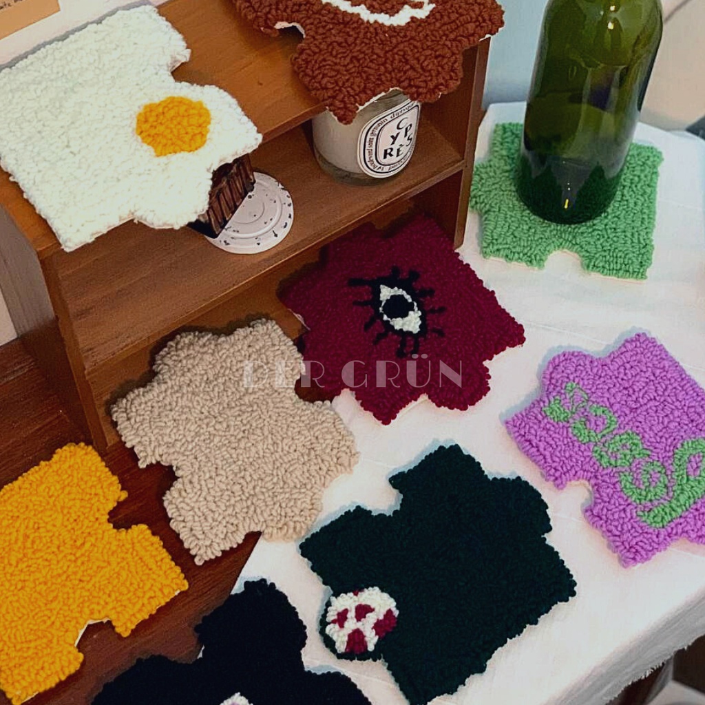 Punch needle coaster | crochet coaster | rug coaster | tufted coaster | mug rug drink coaster | puzzle coaster | 戳戳绣垫子