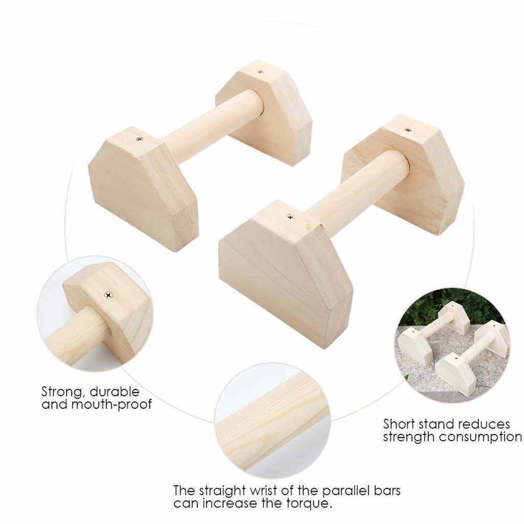 Push Up Stand Bar Wooden Parallette Parallel Handstand Calisthenics Yoga Crossfit Non-slip Kayu Tekan Tubi Senam