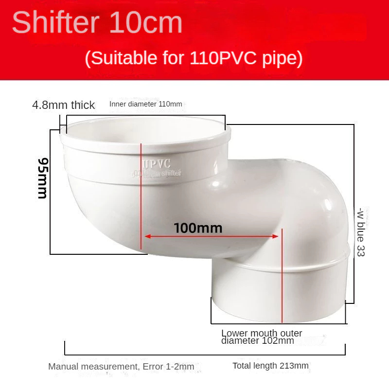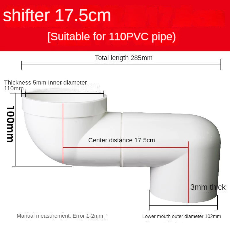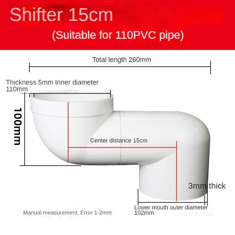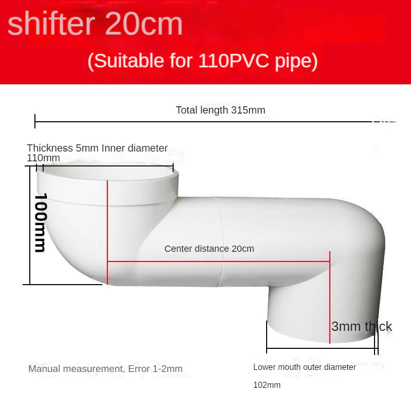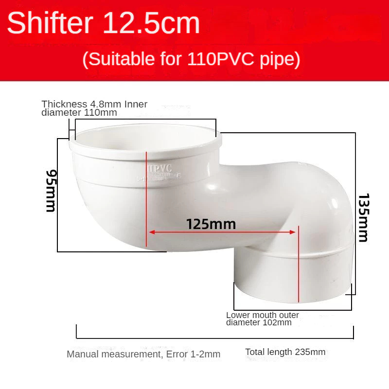 Pvc Integrated Toilet Shifter Accessories Sewer Pipe Toilet Digging-Free Horizontal Shift 5cm 110 Flat Pipe Toilet