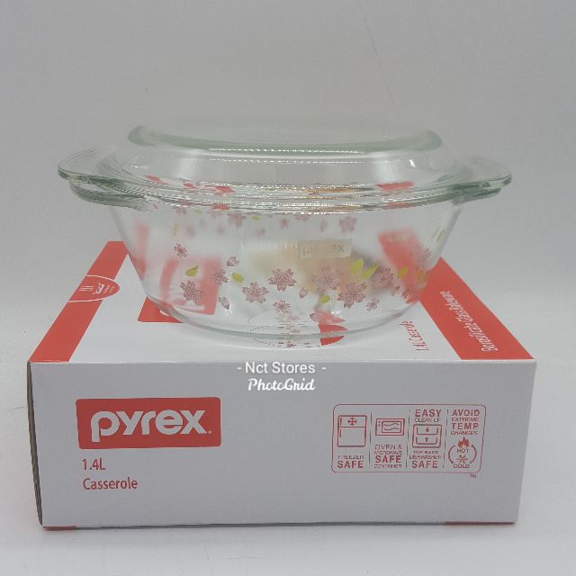 Pyrex Casserole with Lid 1.4L, 1.5L, 2L - Borosilicate Glass, Oven/Microwave Safe/Mangkuk Kaca Pyrex Dengan Penutup Kaca