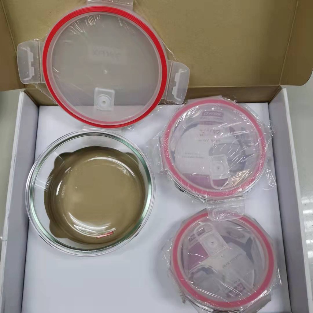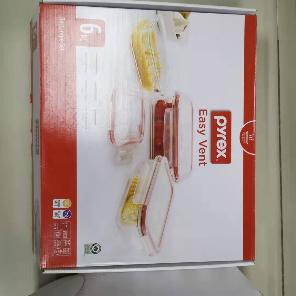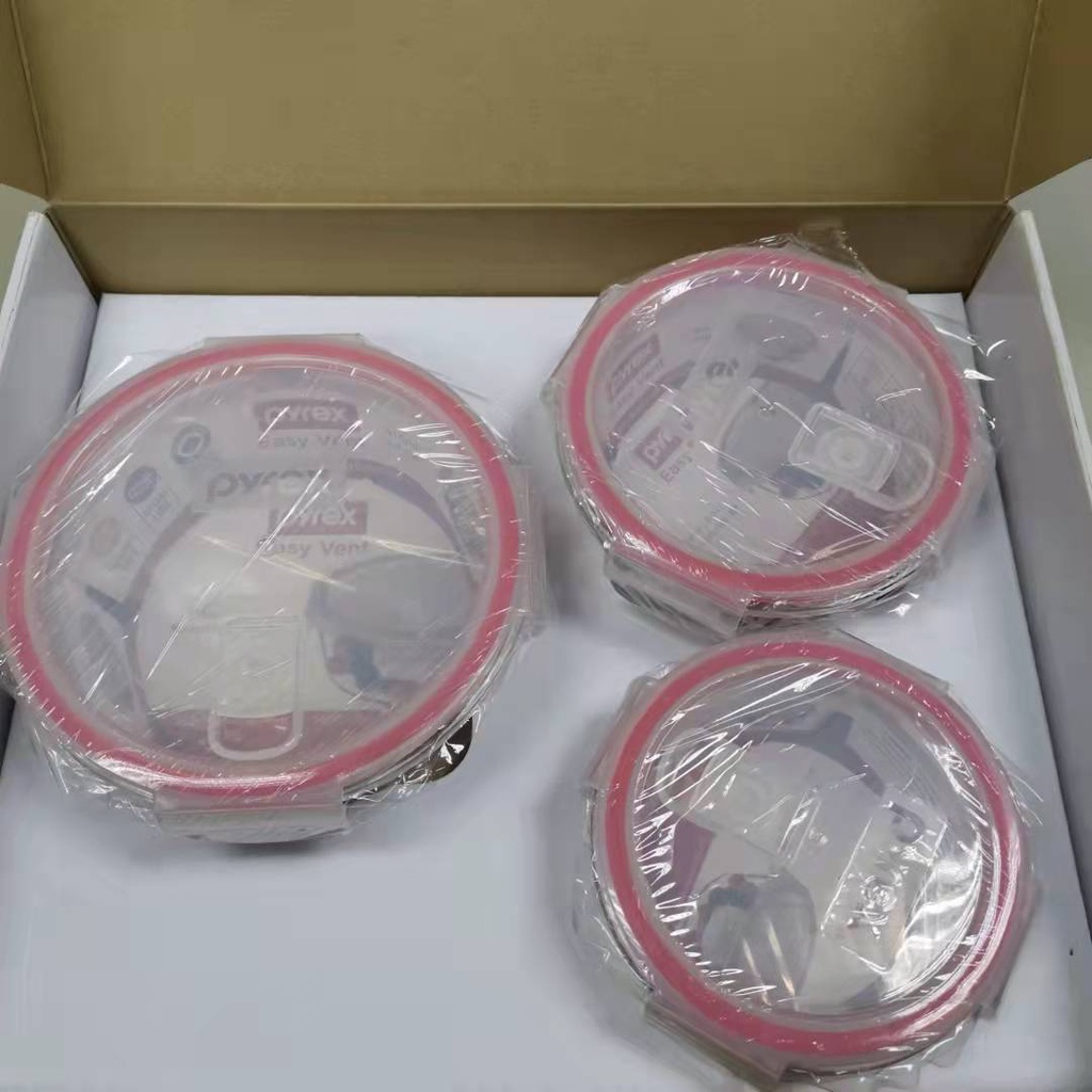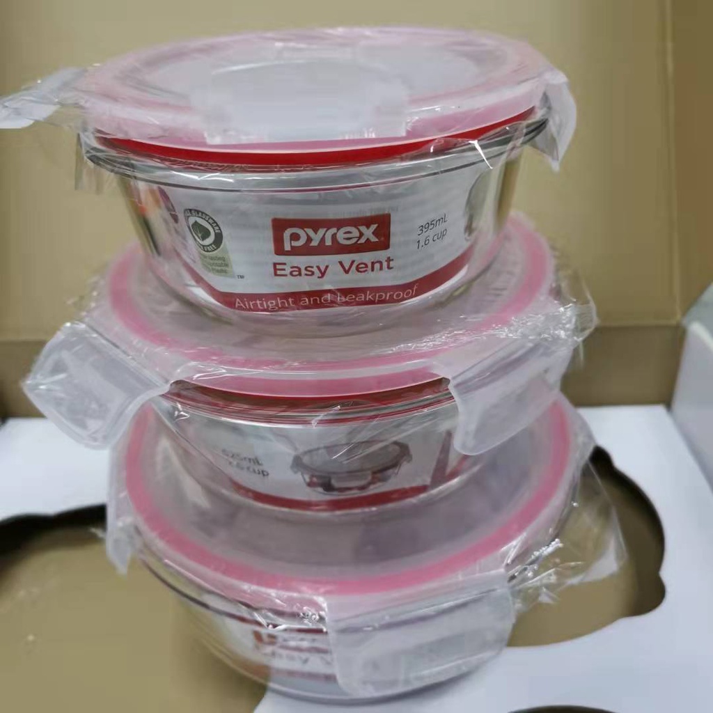 Pyrex Easy Vent 6pcs Round Glass Storage Bowl with Air Tight Leak Proof Lid Tupperware