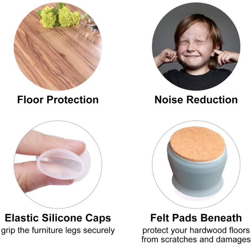 QB Carpeted Chair leg cover Silicone table leg foot pad chair leg protector antislip Pembalut penutup Sarung kaki kerusi