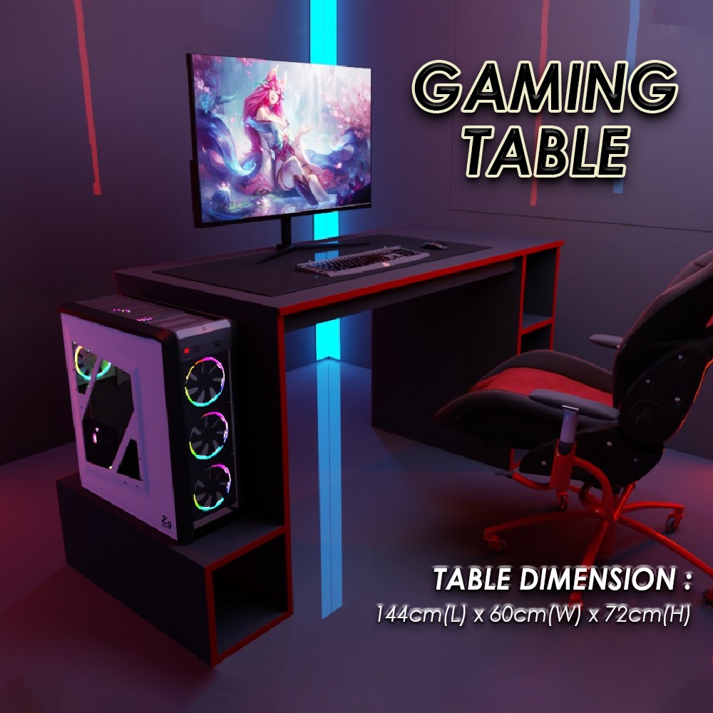 QB HP057 Gaming Table (144cmx 60cm x 72cm) / Modern PC Table / Study Table/ Meja Belajar/ Meja PC with CPU Place