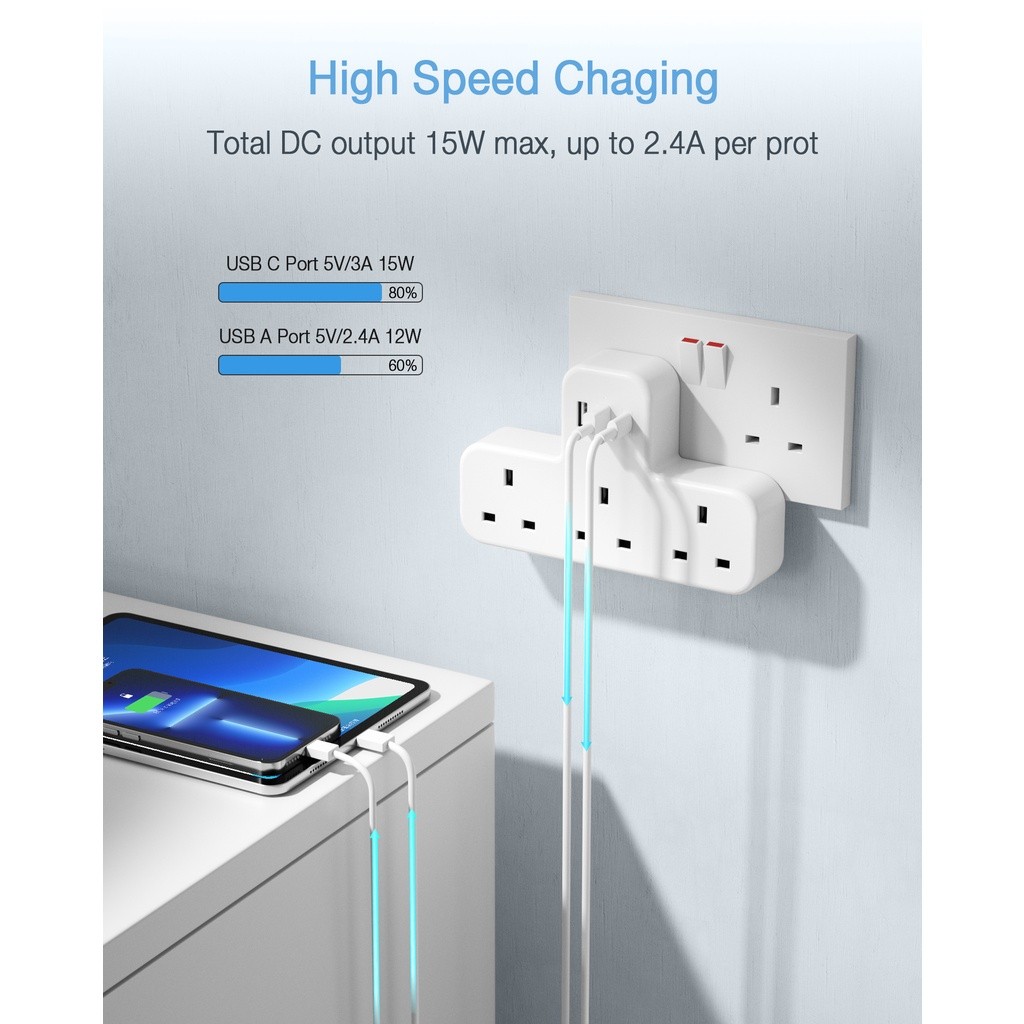 QC TESSAN Multi Plug Power Adapter with USB+Type C,Surge Protector Extension Socket Wall Charger Adaptor