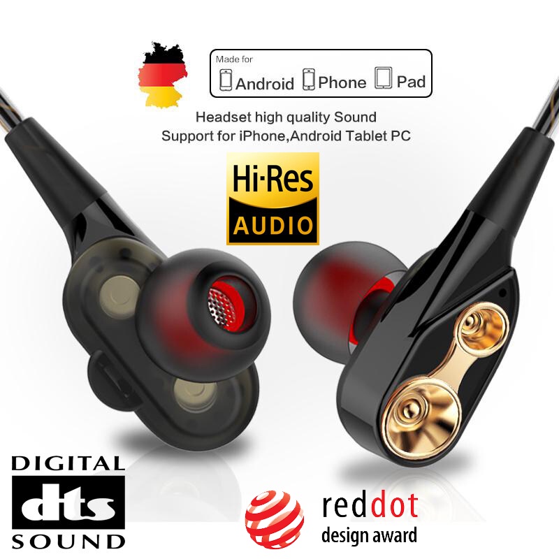 QKZ Dual Dynamic Driver Unit 9D HiFi Sound Earphone Stereo Bass Sports Headset 3.5mm Monitor Earbuds with HD Microphone
