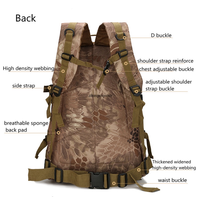 QLOBUS Army Military 3P PUBG Attack Tactical Backpack 40L Outdoor Travel Bag Beg Tentera