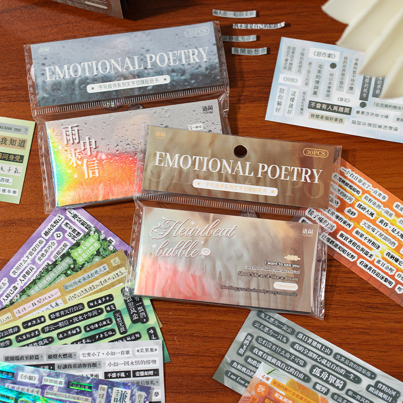 QOUZMO 30pcs/lot Vintage junk journaling collage bujo film cutting sticker book[Words and Phrases into Poetry Series]diy scrapbook supplies diary deco carft stickers