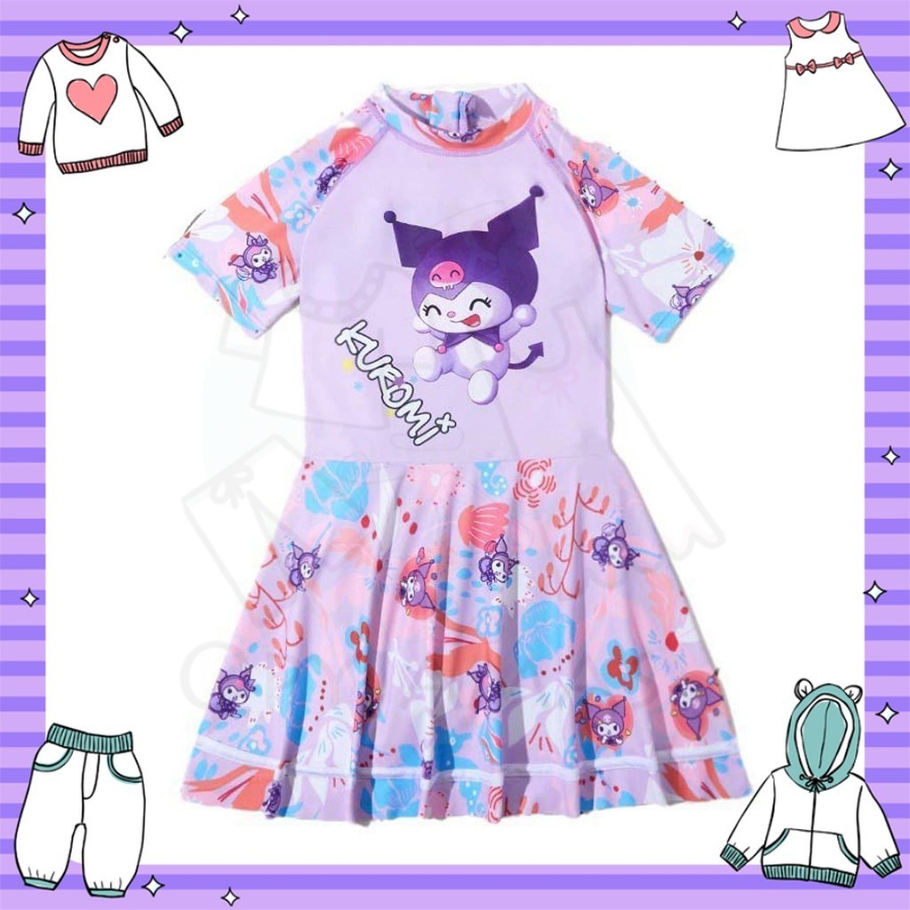 QPyjamas Kids Swimwear Girl Swimsuit Kuromi Swimming Suit Baju Renang Budak Baju Mandi Perempuan