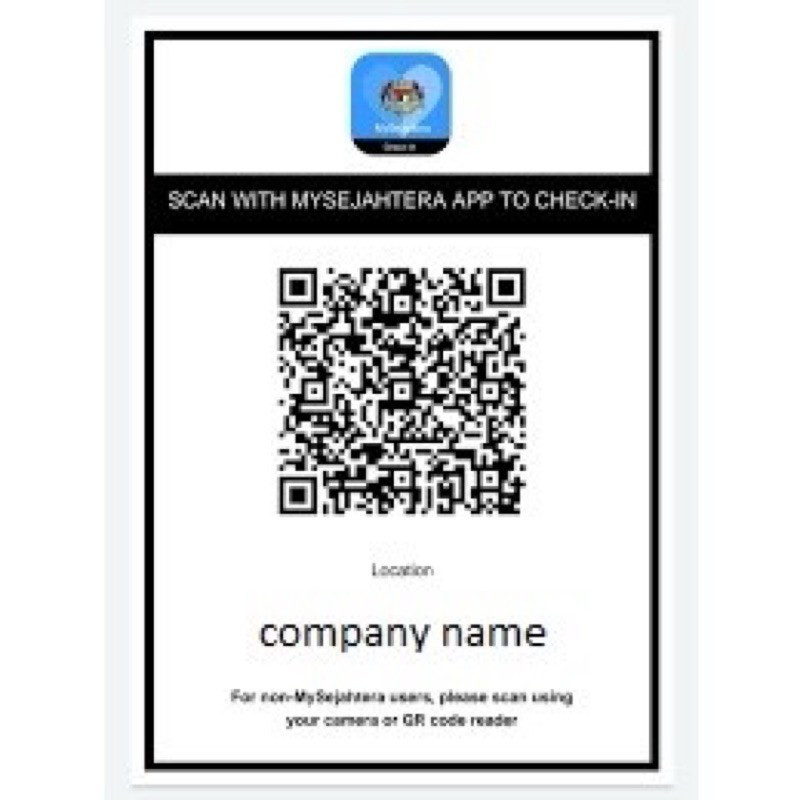 QR Code Mysejahtera A4 A5 Size Laminate or Sticker