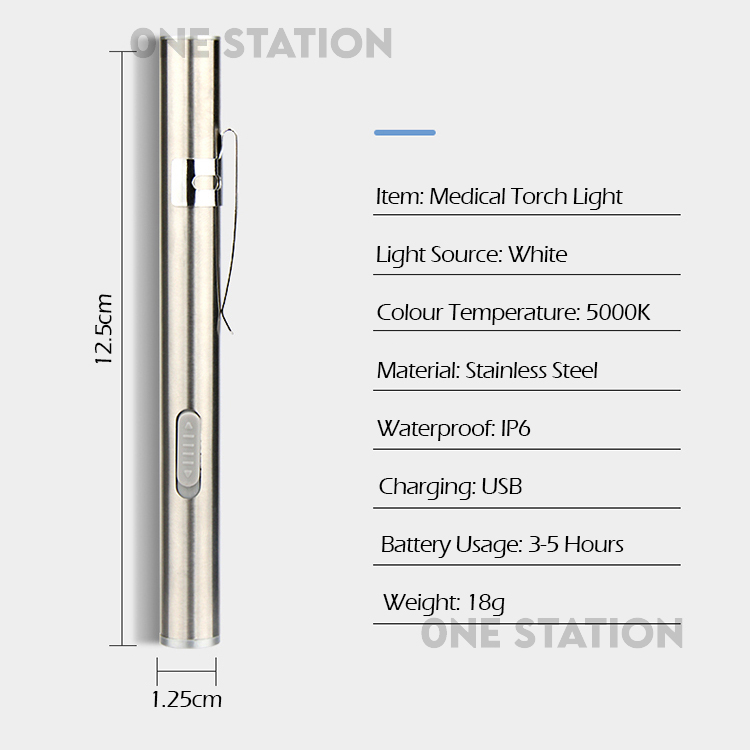 QS-858 Rechargeable Stainless Steel Led USB Pen Light for Doctor Nurse Medical Flashlight Mini Torchlight Lamp Pocket