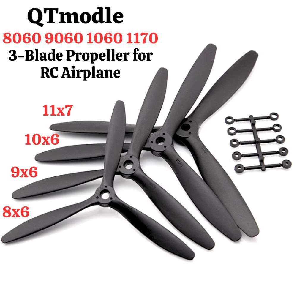 QTmodle Propeller 8060 9060 1060 1170 8x6 9x6 10x6 11x7 Efficient 3-Blade Propeller for RC Airplane RC Plane QTM