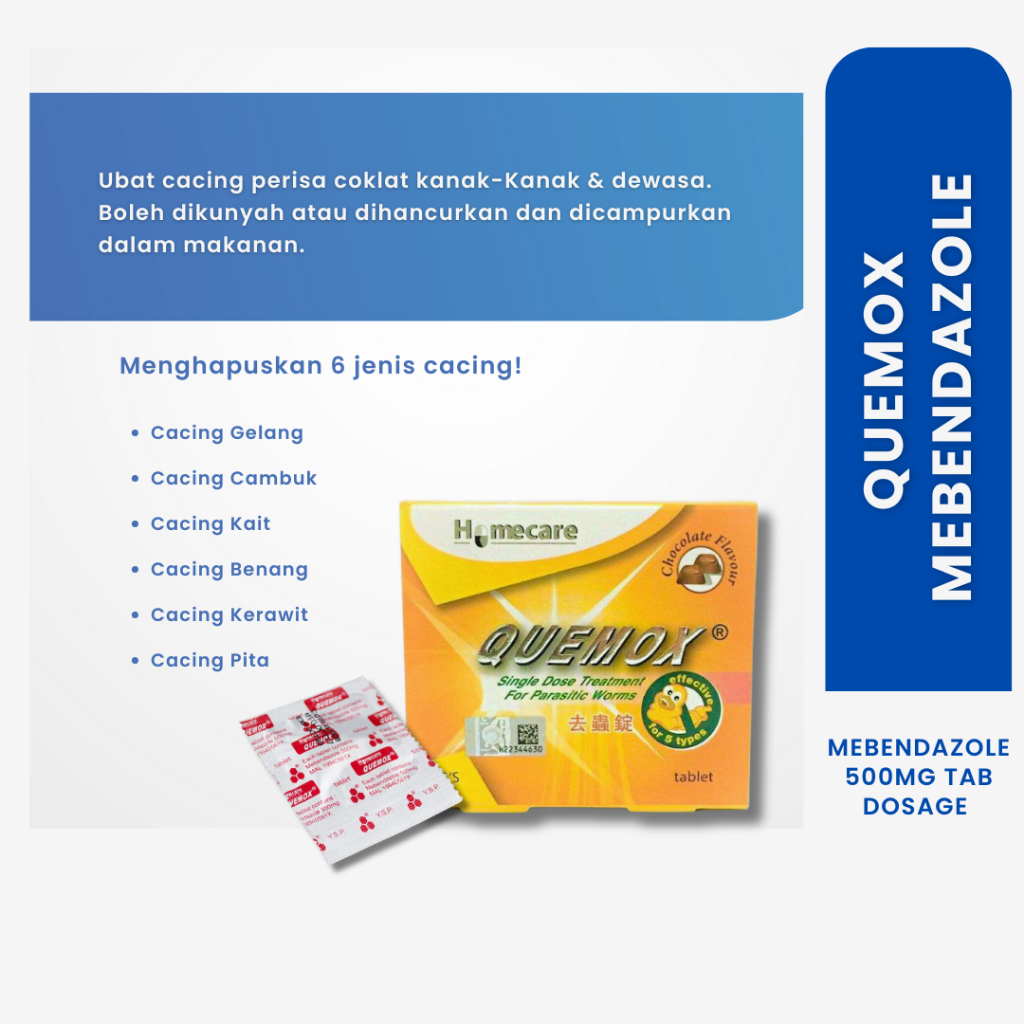 QUEMOX MEBENDAZOLE 1 BOX 1 TABLET CHOCOLATE FLAVOUR (UBAT CACING)
