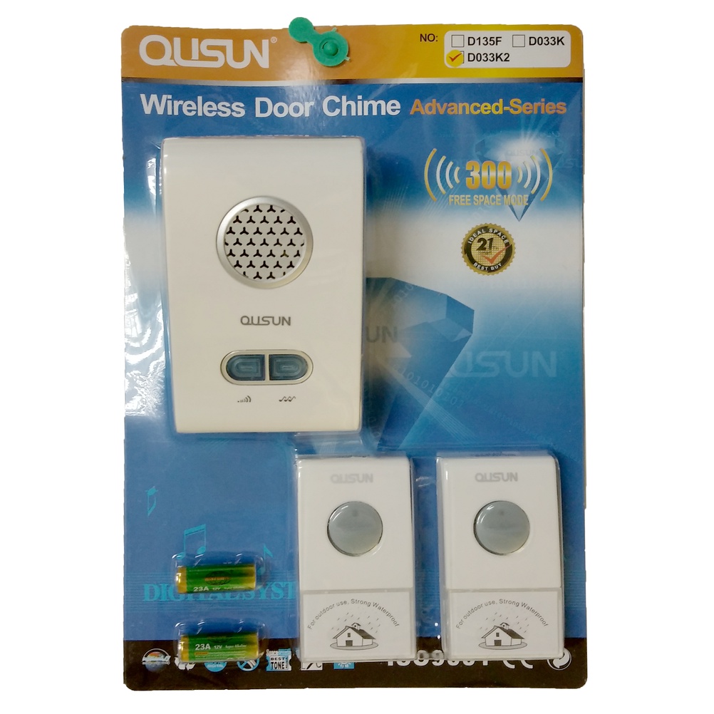 QUSUN D033K2B Wireless Door Chime Doorbell Loceng Pintu With 51 Songs 1 bell 2 push button