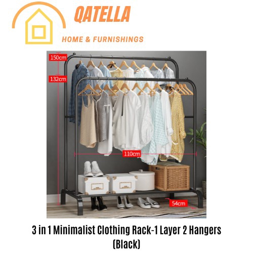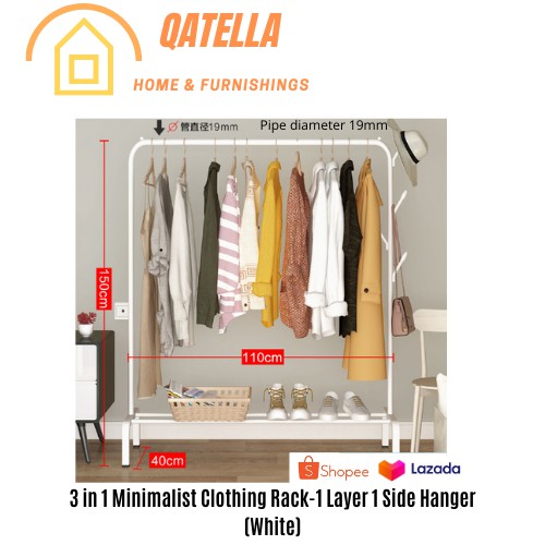 Qatella 110cm Single Pole Strong Steel Structure Laundry Rack Cloth Hanger Clothes Rack Hanging Organizer/Mulig Rack 衣帽架