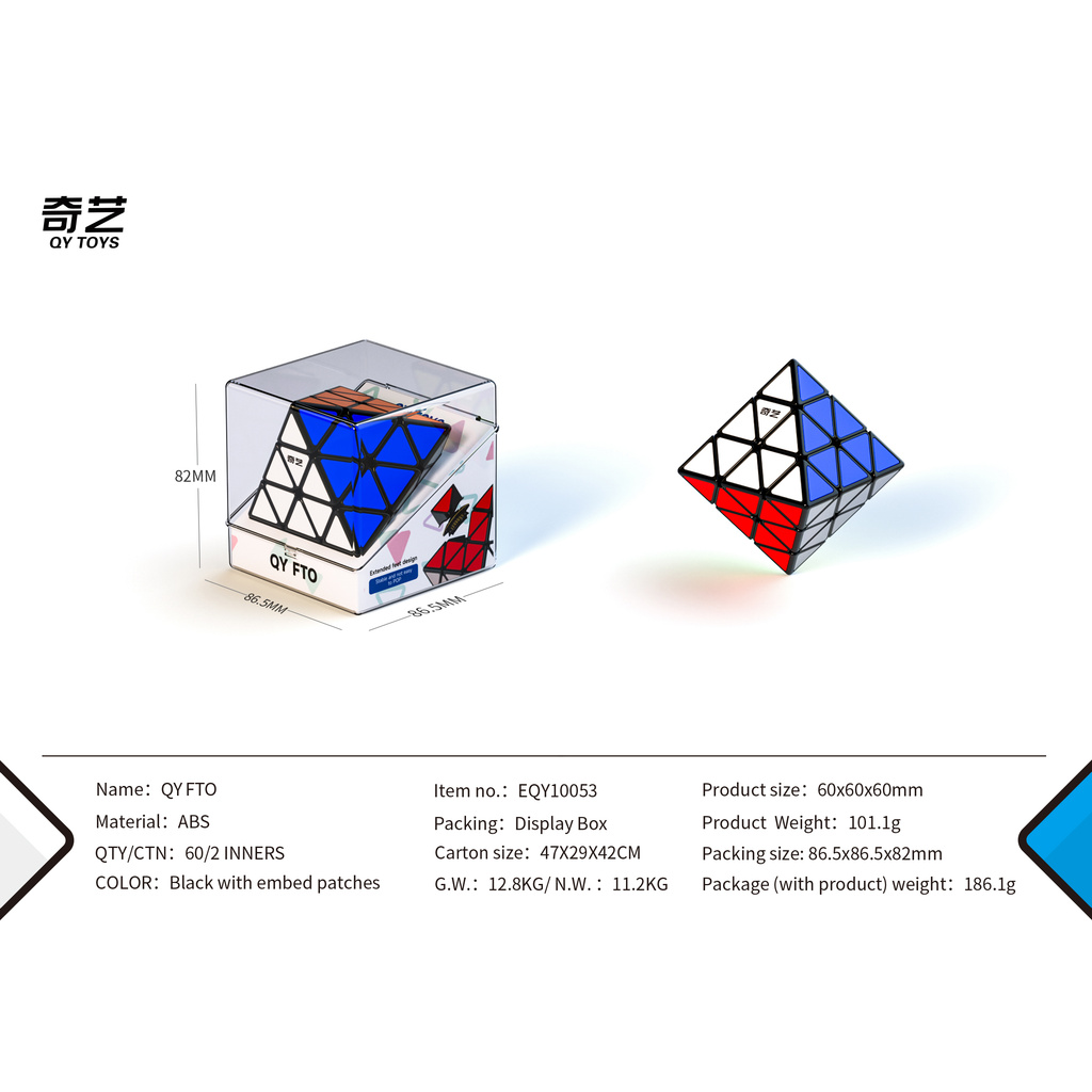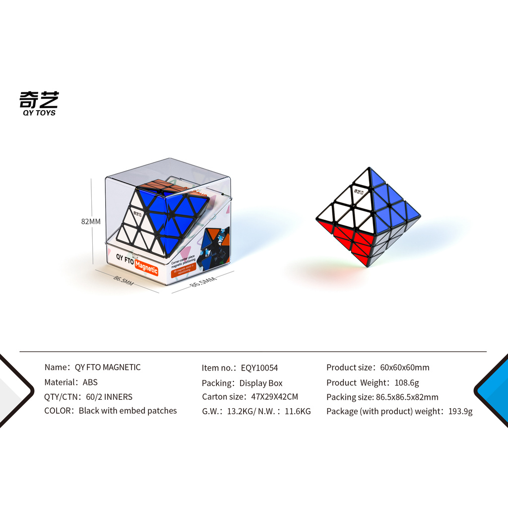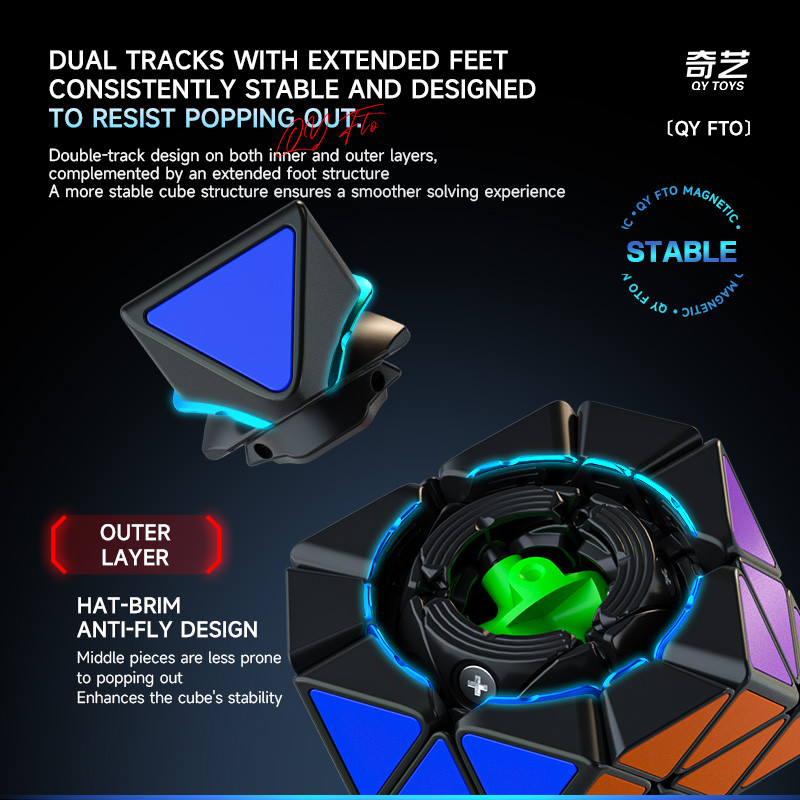 QiYi FTO Rotating Octahedron Magnetic Cube Professional Black Internals Combined with Colorful Tiles Making Puzzle Toys