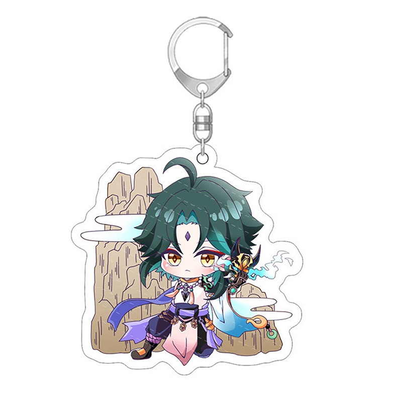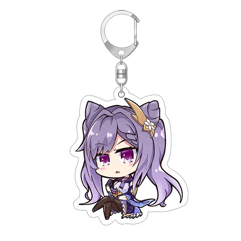 Qianxi1128 Genshin Impact Keychain Genshin Keychain Keyring Diluc Keychain Lanyard Rantai Kunci Keqing Barbara Paimon