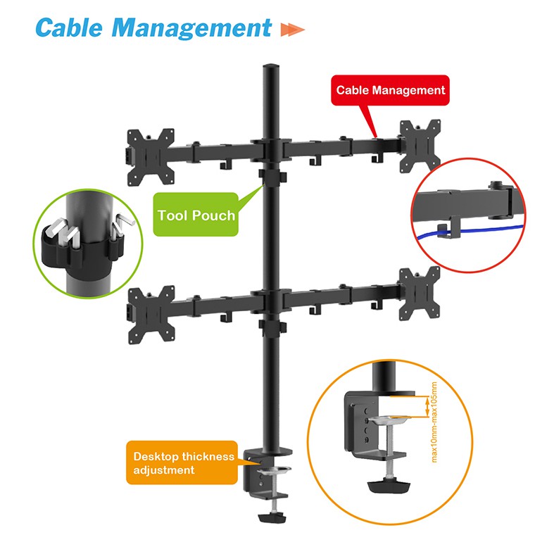 Quadruple Monitor Mount / 4 Monitor Stand / 4 Arm LED Stand / LCD Arm for 4 monitor [ GROMMET & C-CLAMP ]
