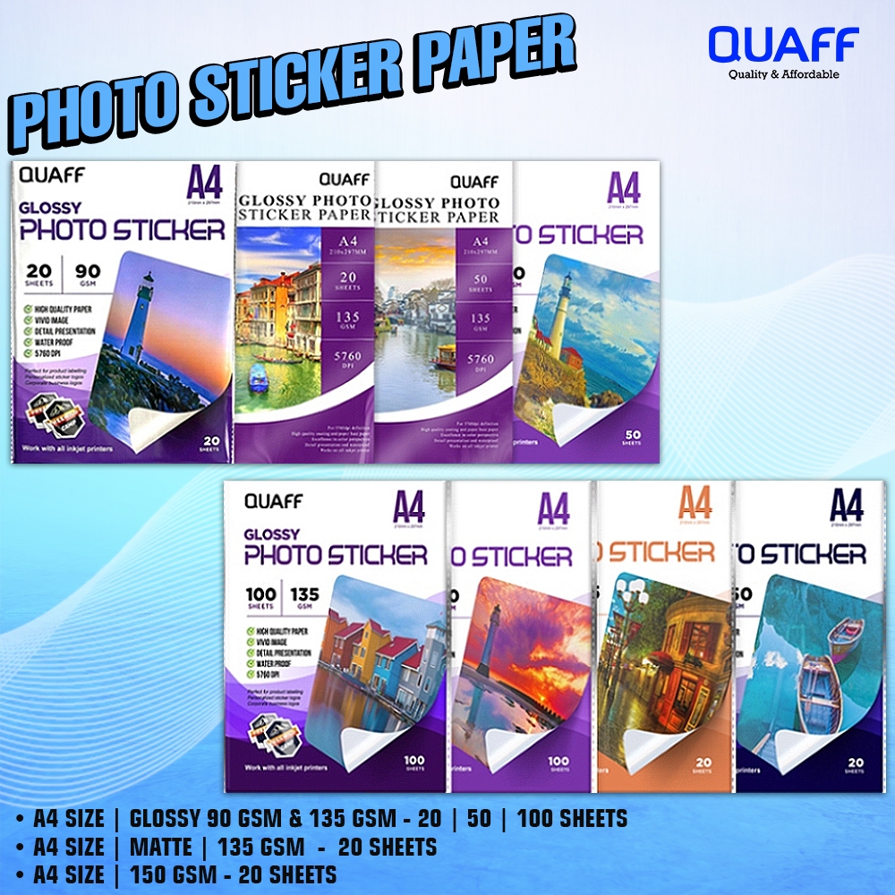 Quaff Glossy/Matte Photo Sticker A4 Size Inkjet Paper 90gsm & 135gsm