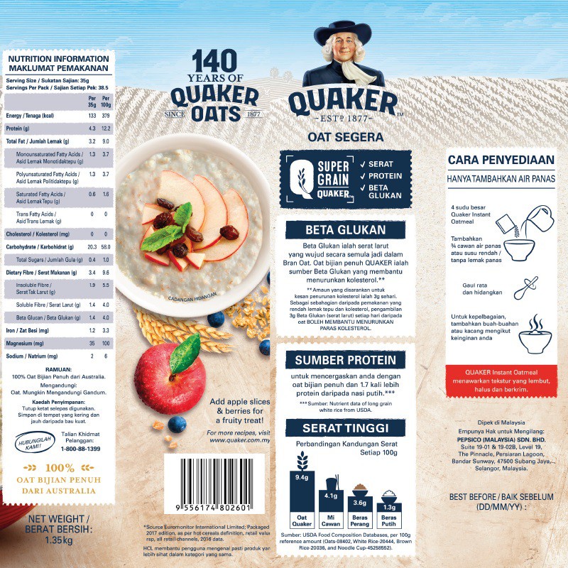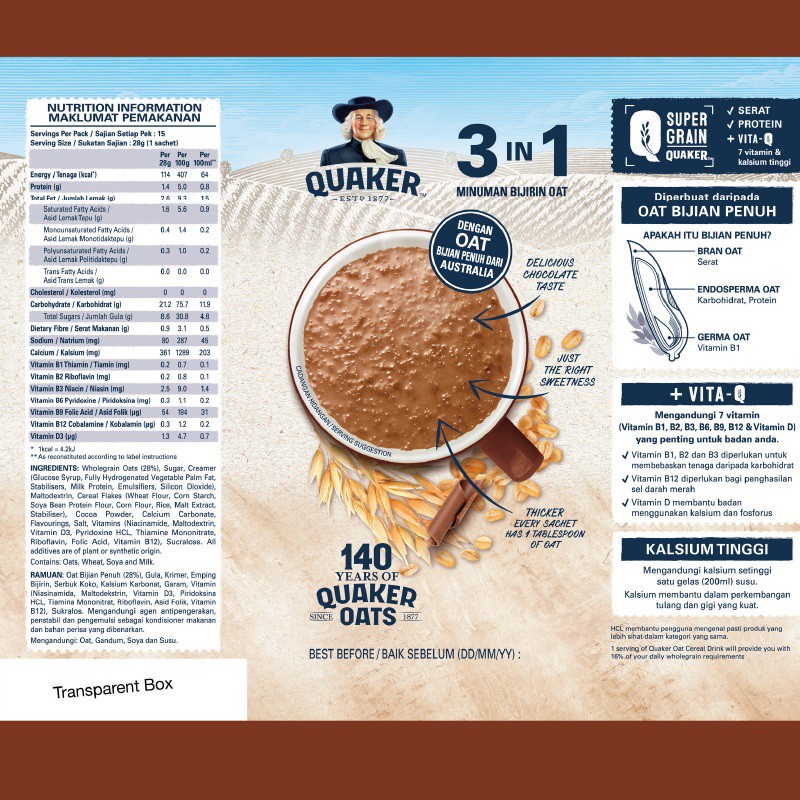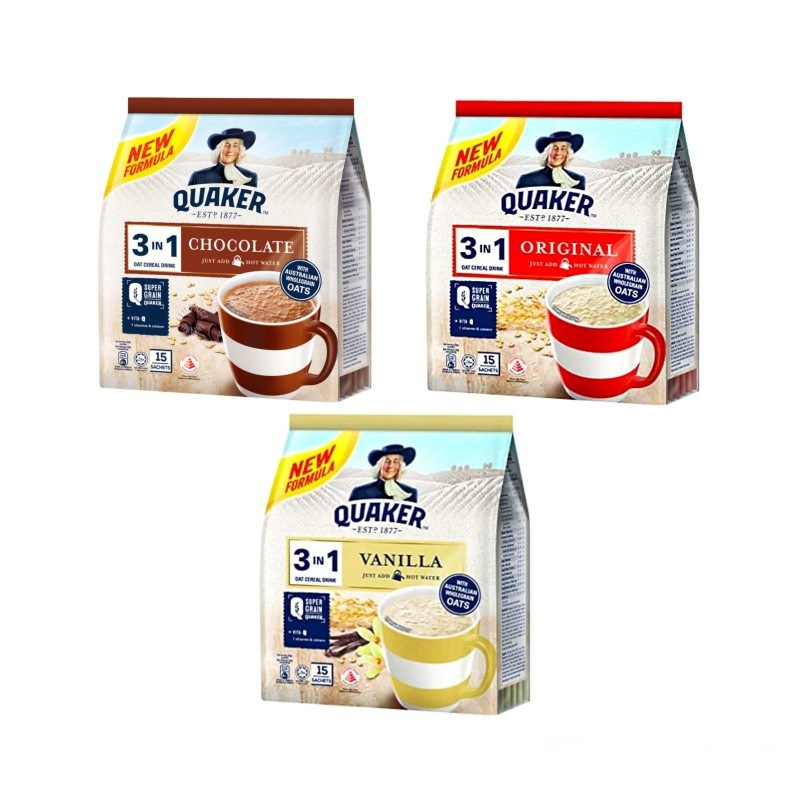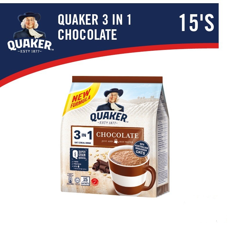 Quaker Oats - Instant Oatmeal/Quick Cook/Cereal Drink 3in1 Original/Cereal Drink 3in1 Chocolate [READY STOCK]