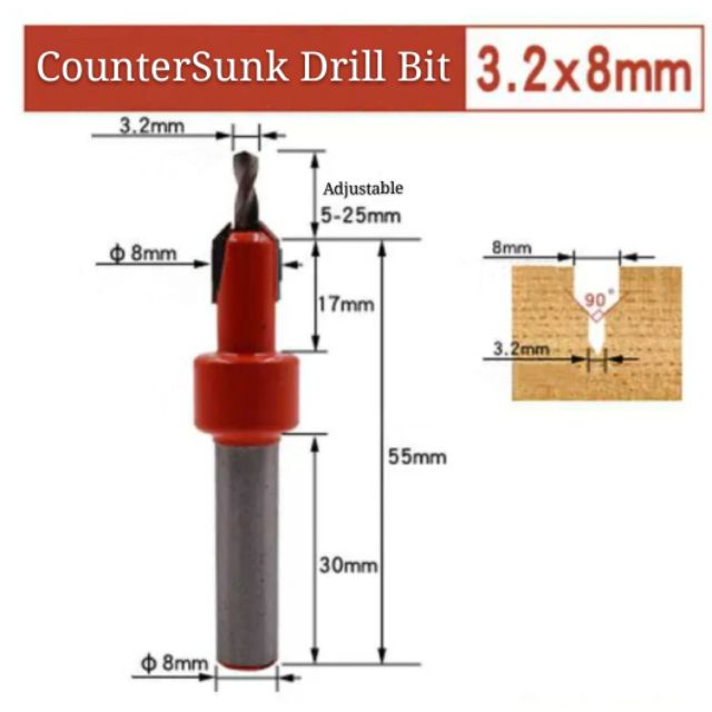 Quality Counter Sink Sunk Screw Head Drill Bit Wood Screw Mata tebuk Lubang Kepala Skru 3.2x8mm **