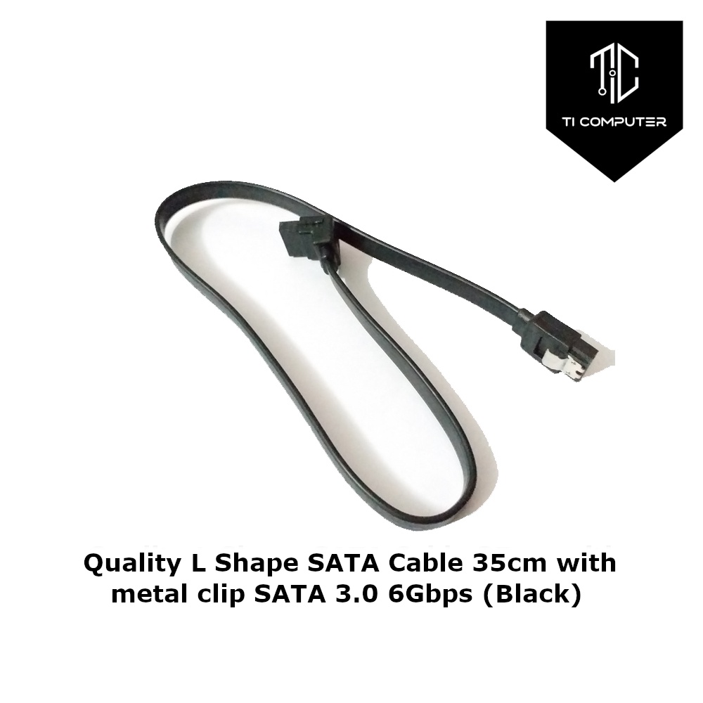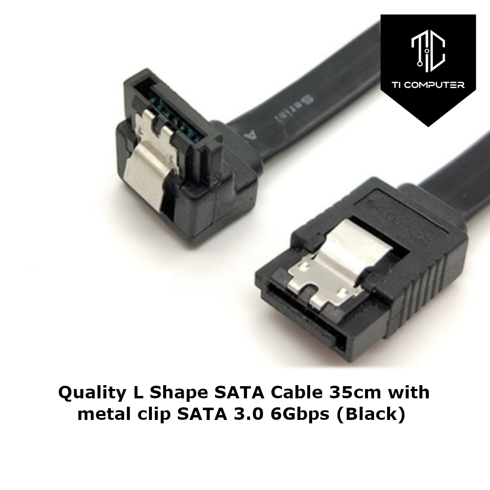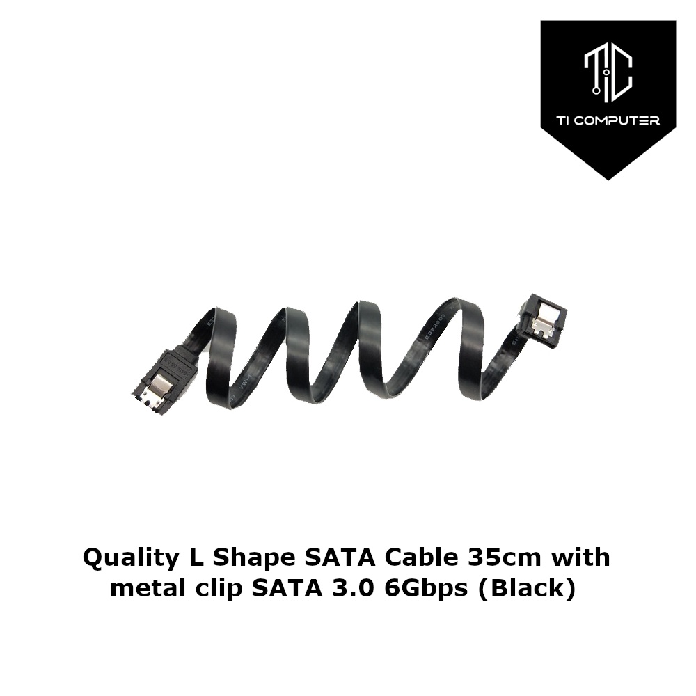 Quality L Shape SATA Cable 35cm with metal clip SATA 3.0 6Gbps (Black)
