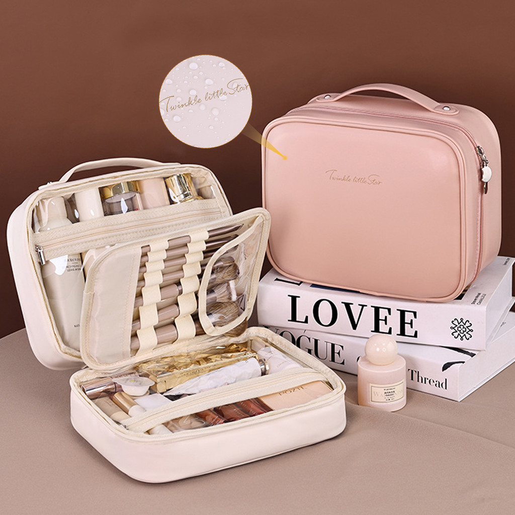 Quality PU Double Layer Square Box for Girls Women Makeup Bag Large Capacity Cosmetic Bag Portable Waterproof Travel Storage Bag