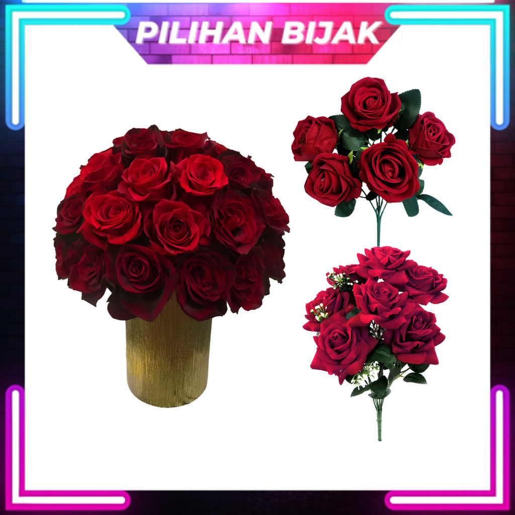 5pcs Artificial Velvet Rose Bunga Rose Tiruan Bunga Hiasan Bunga Hantaran Artificial Flower - AF1353-1850
