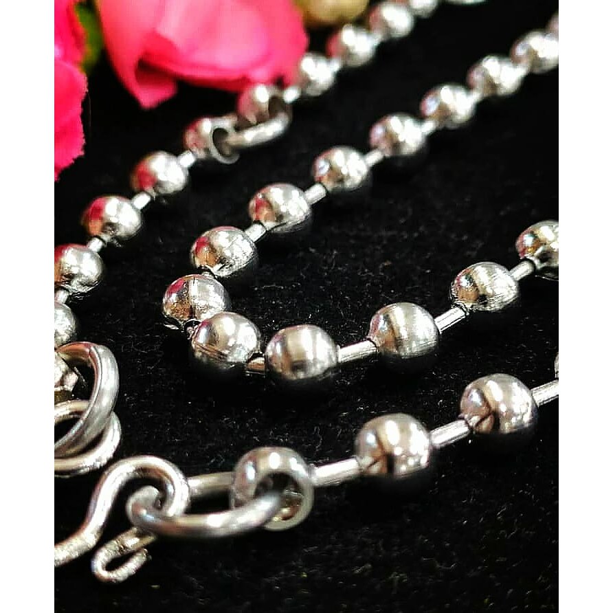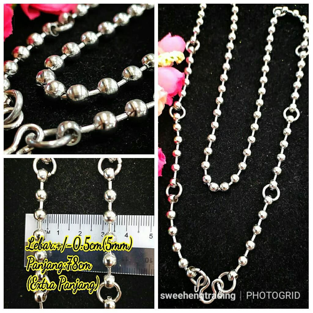QualityThai Ori.Stainless Steel Rantai Leher Tangkai Kasar, Pattern biji Bulat, Boleh Pakai Banyak Biji Tangkai
