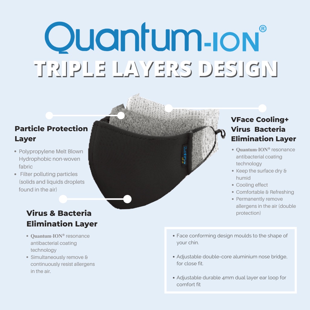 Quantum Ion Mask (3-Ply) Resonance Antibacterial Mask Adult Version / Kid Version Washable 100x