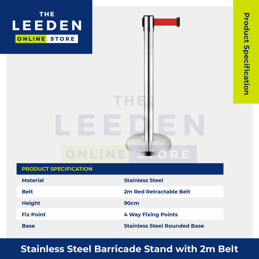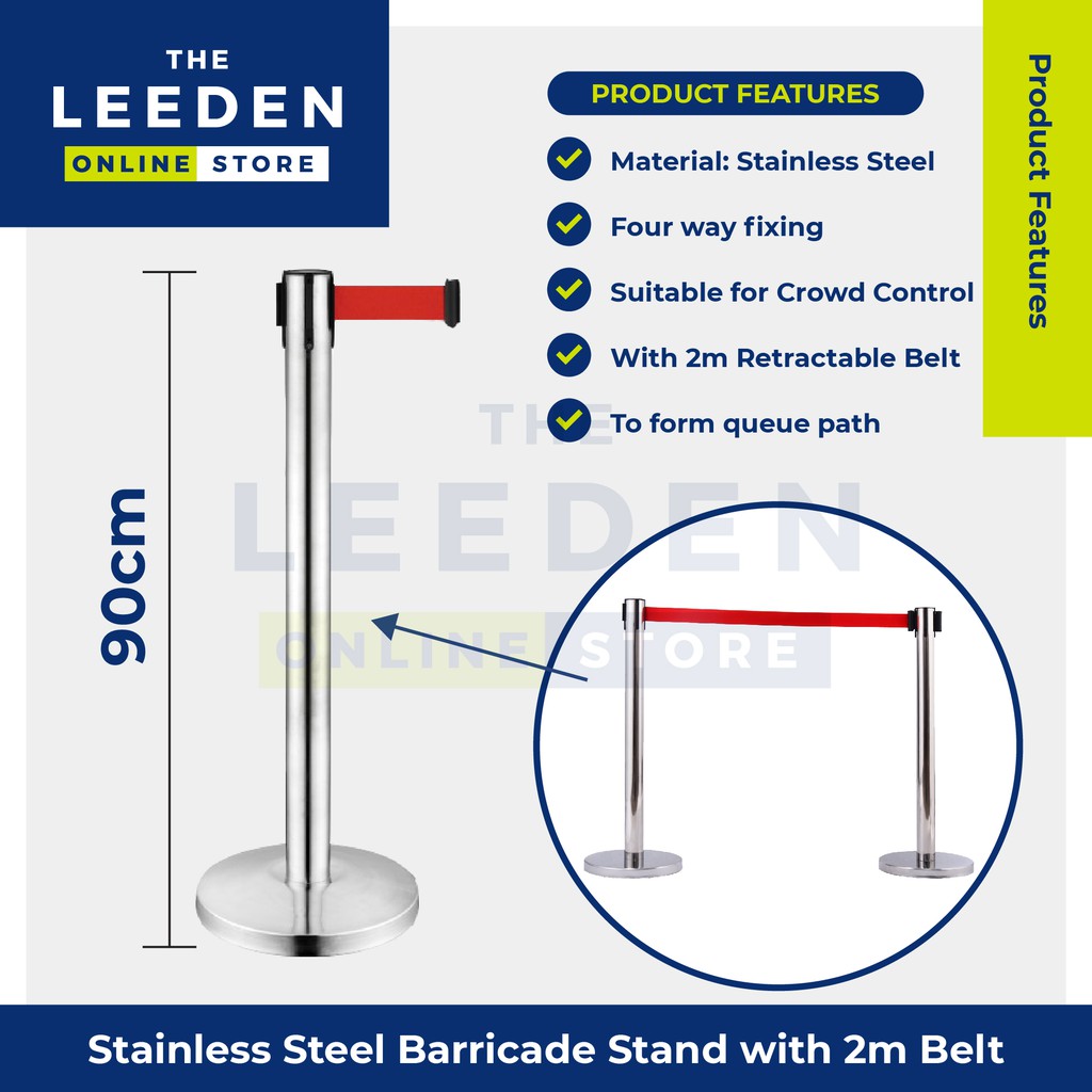 Queue up Stand 90cm Stainless Steel Barricade Stand with 2m Retractable Belt by Leeden Online Store