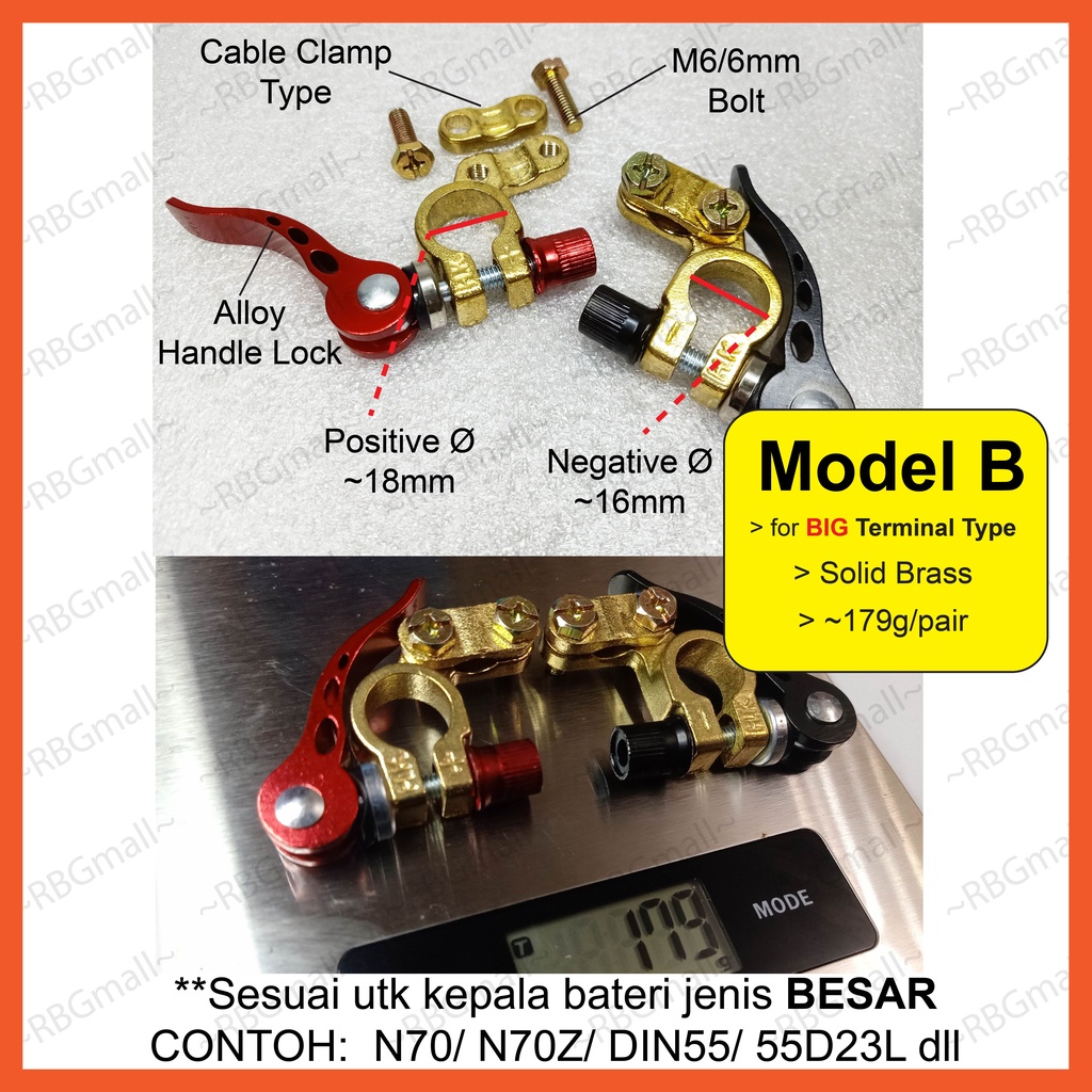Quick Release Car Battery Terminal Clip BRASS- Kepala Bateri Kereta Quick Release Tembaga
