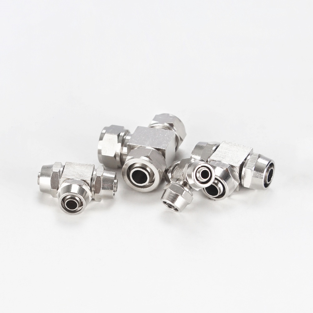 Quick Twisting Joint KPE Pneumatic Fitting 4-16mm Fit Hose Connector Pneumatic Fitting T Type Nickel Plated Brass