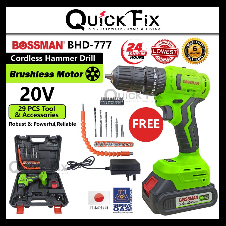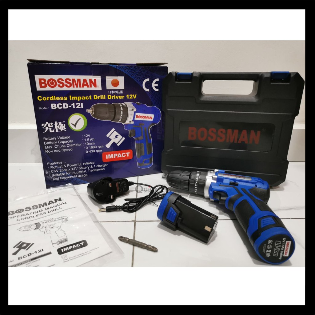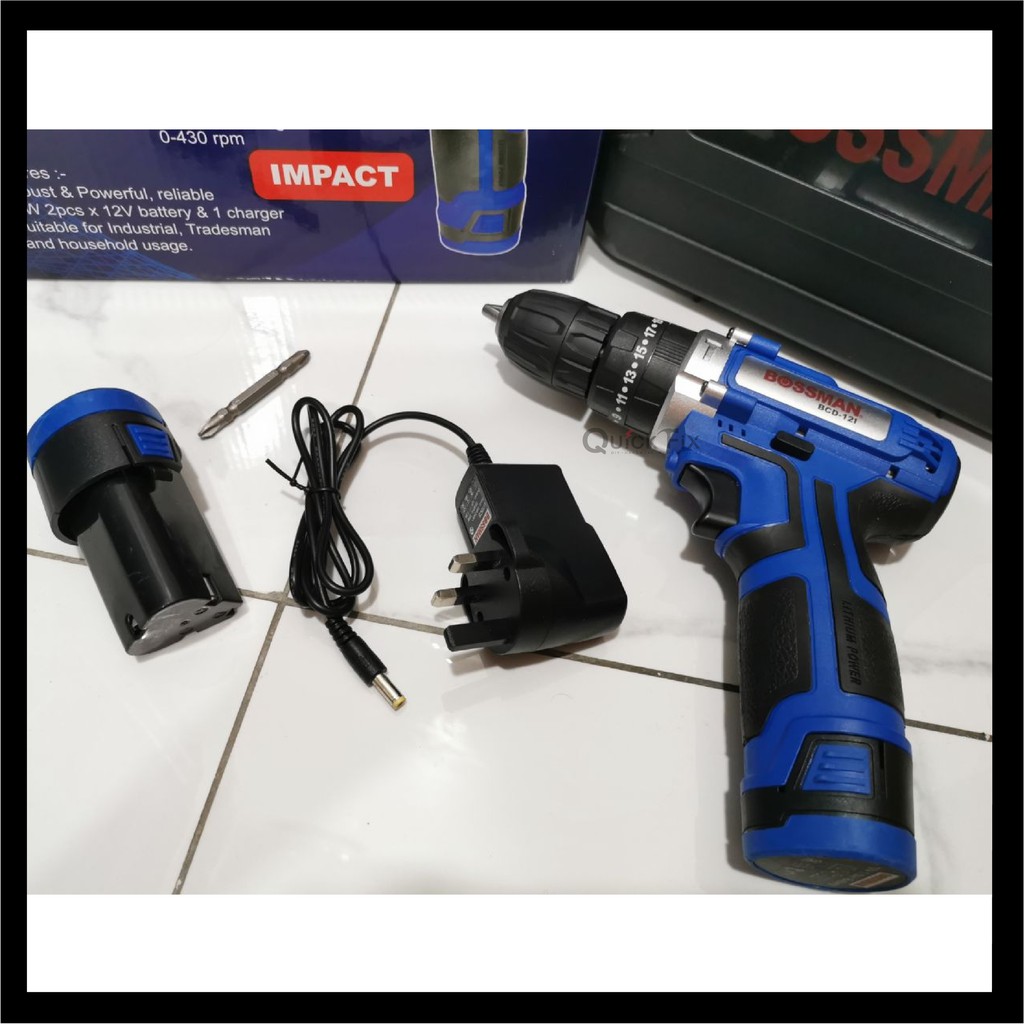 QuickFix [NEW 3 IN 1] Cordless Impact Drill Driver 12V Screw Set BOSSMAN BCD-12i Battery Drilling Wall Wood Metal Screw