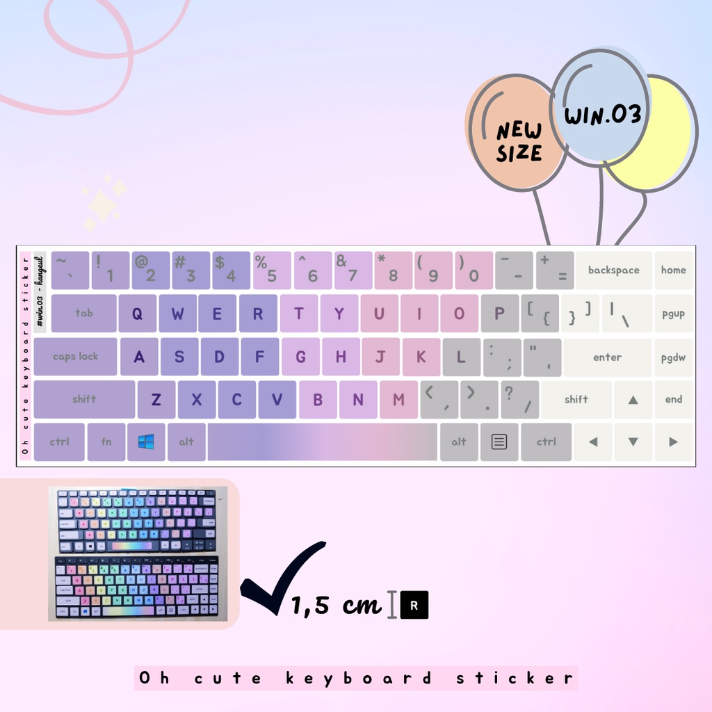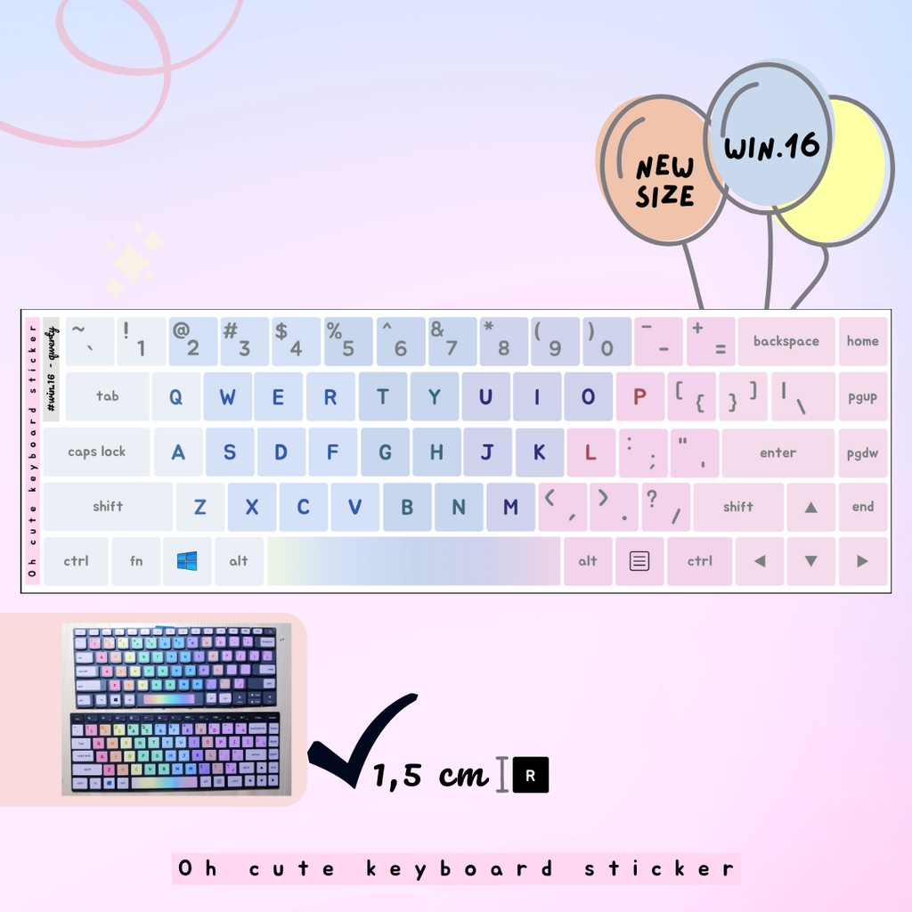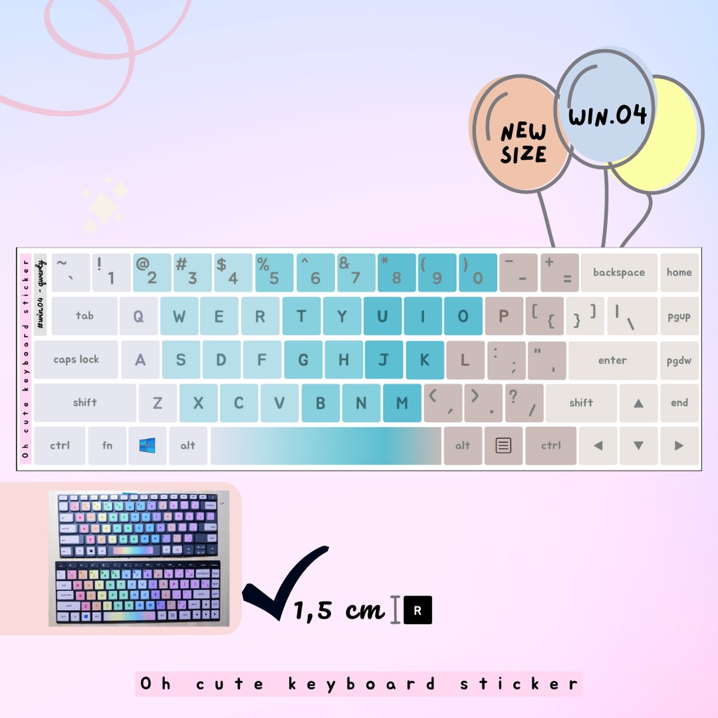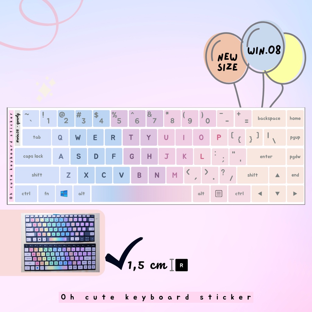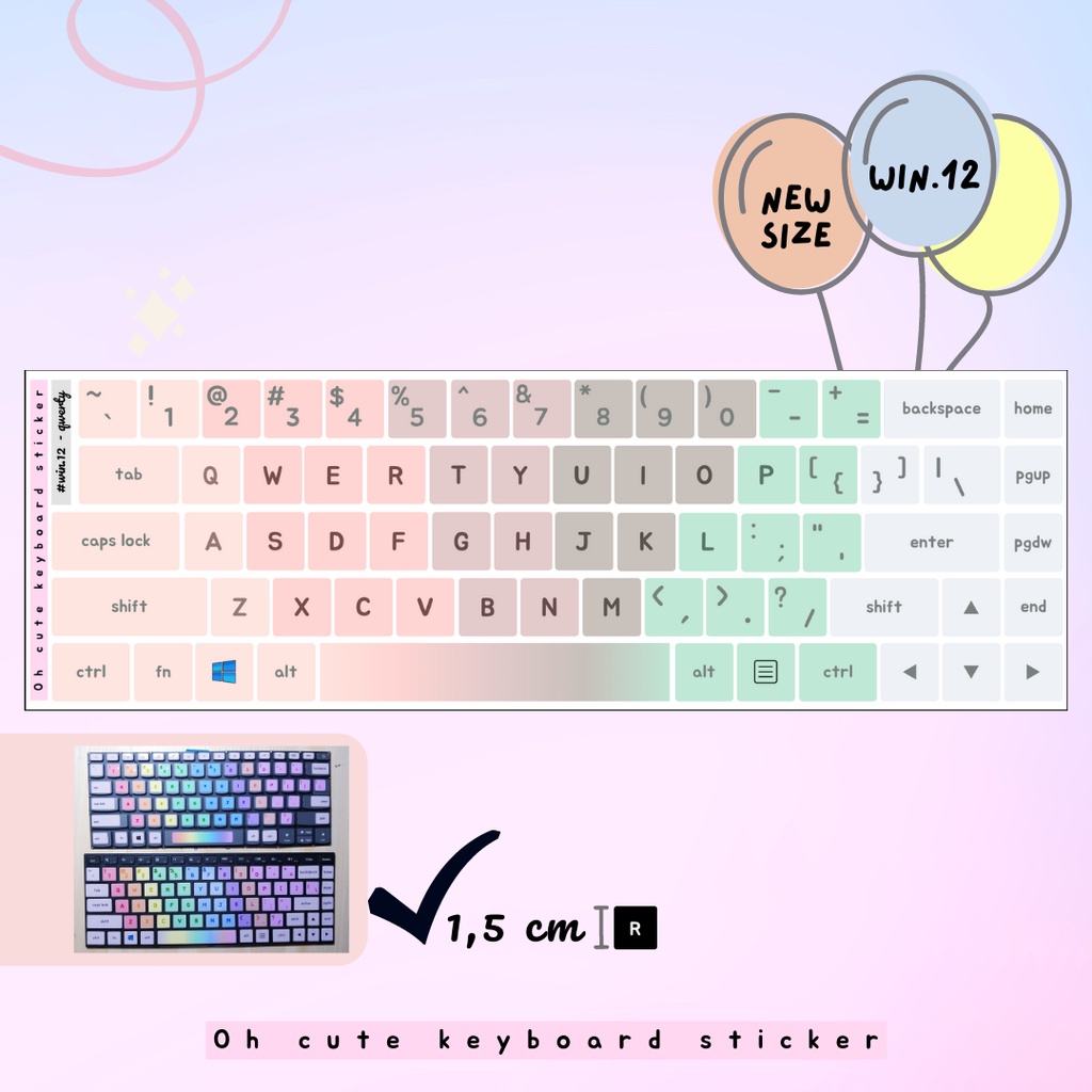 OH CUTE Qwerty English Keyboard Sticker for Windows - Aesthetic Palette Color Vinyl Laminated