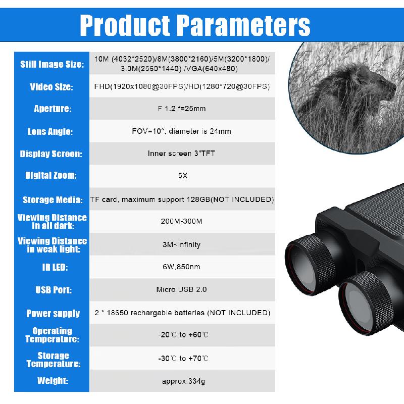 R12 Night Vision Binoculars 5X 1080P Video 300m Infrared Digital Hunting Telescope Camping Equipment Night Vision Scout
