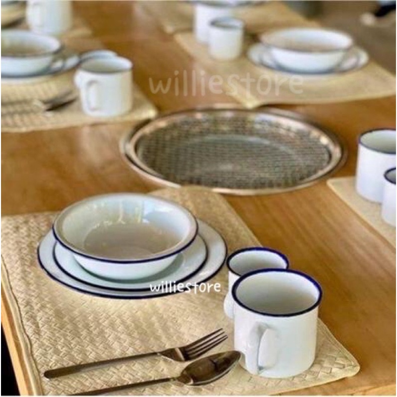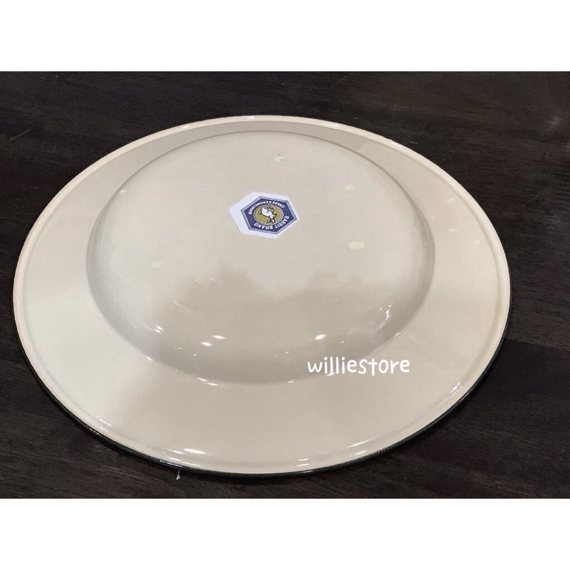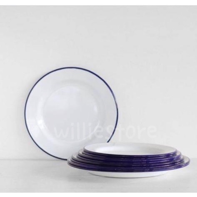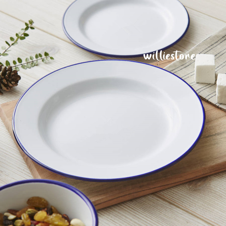 RABBIT BRAND Enamel Plate Nostalgic Vintage/Enamel Soup Plate/Pinggan Ayan White Base Blue Lining/Pinggan Sapan