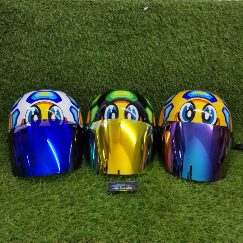 RACING HELMET 46 TURTLE WITH VISOR REVO GOLD / REVO BLUE / BLACK / SMOKE / 2 TONE /RAINBOW HALF HELMET STENG SEPARUH