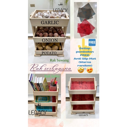 RAK SERBAGUNA/ RAK BAWANG/ RAK BUAH-BUAHAN/ RAK BUKU/ FREE ANTI SLIP MAT 😍🤩