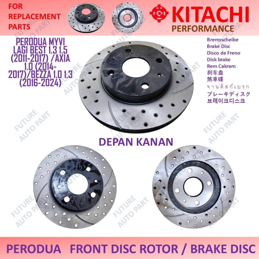 RANDOM BRAND / KITACHI PERFORMANCE - FRONT BRAKE DISC ROTOR 1 / 2PCS - PERODUA MYVI LAGI BEST /AXIA 1.0/BEZZA 1.0 1.3