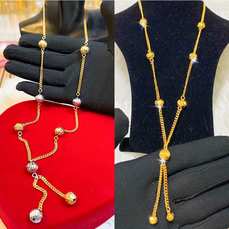 RANTAI LEHER BOBA LABUH ( 70CM ) ( Emas bangkok / Emas korea 24k )