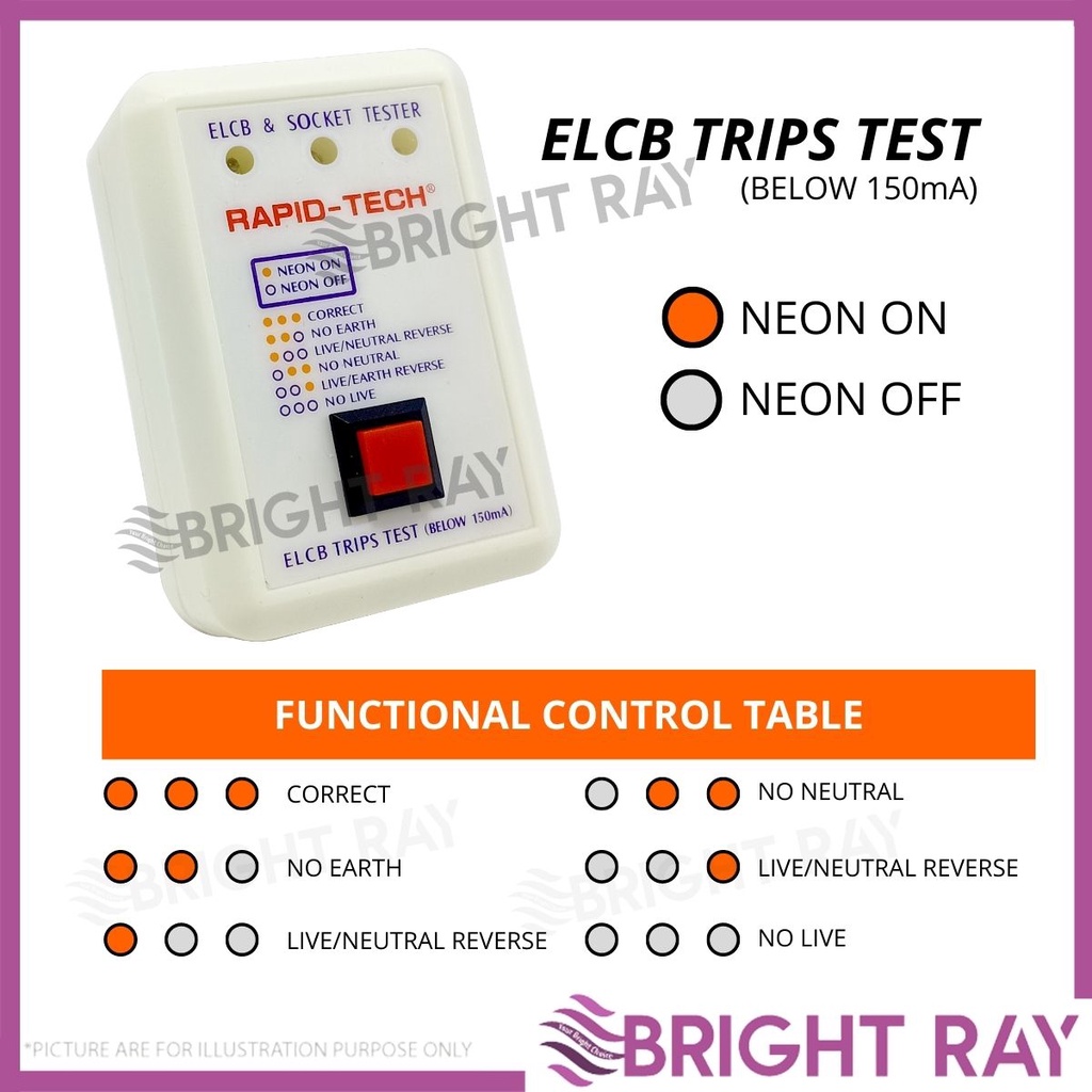 RAPID-TECH 13A 150mA ELCB & Socket Tester With Neon Indicator Electrical Equipment Tools Circuit Socket Tester