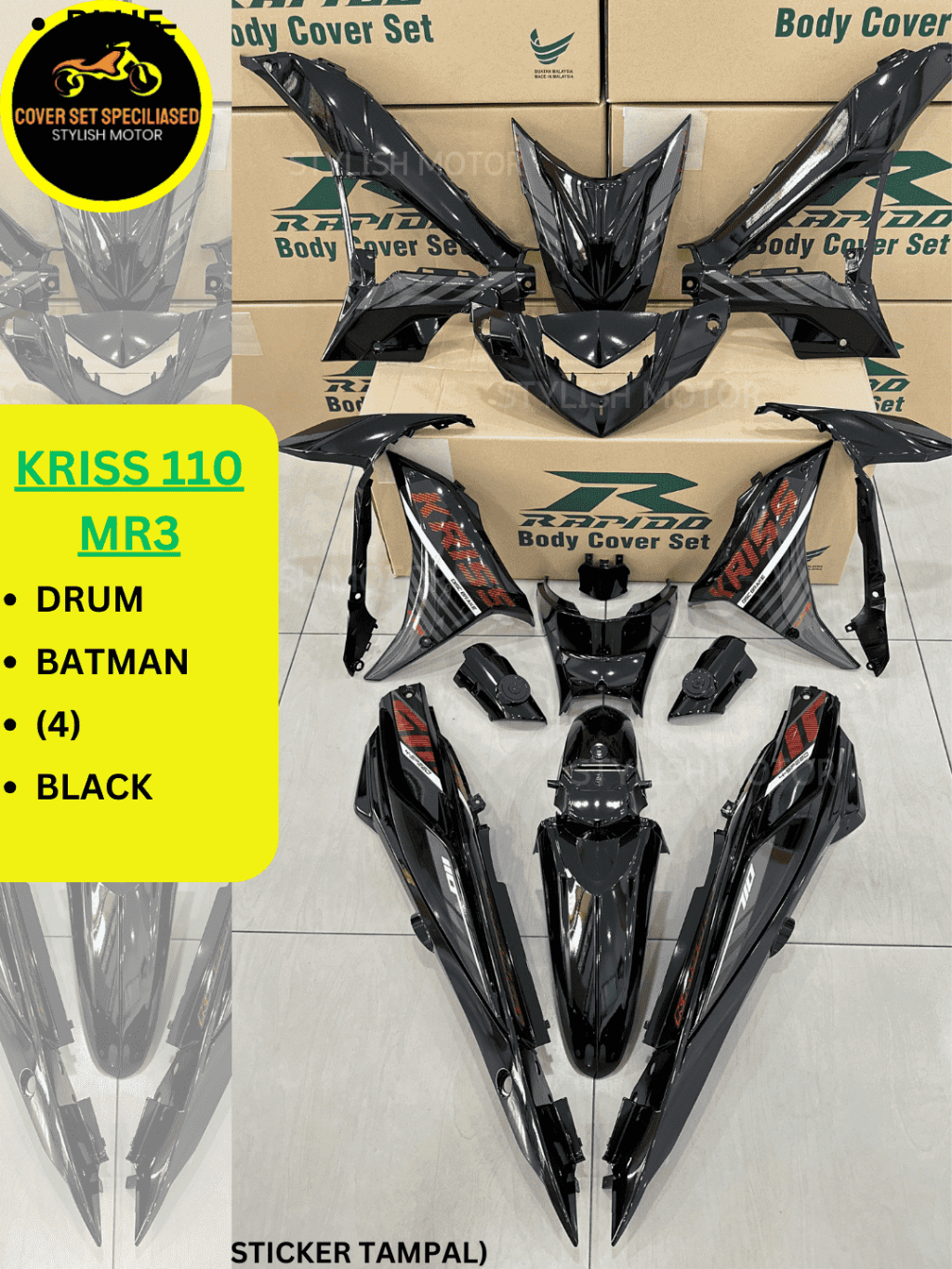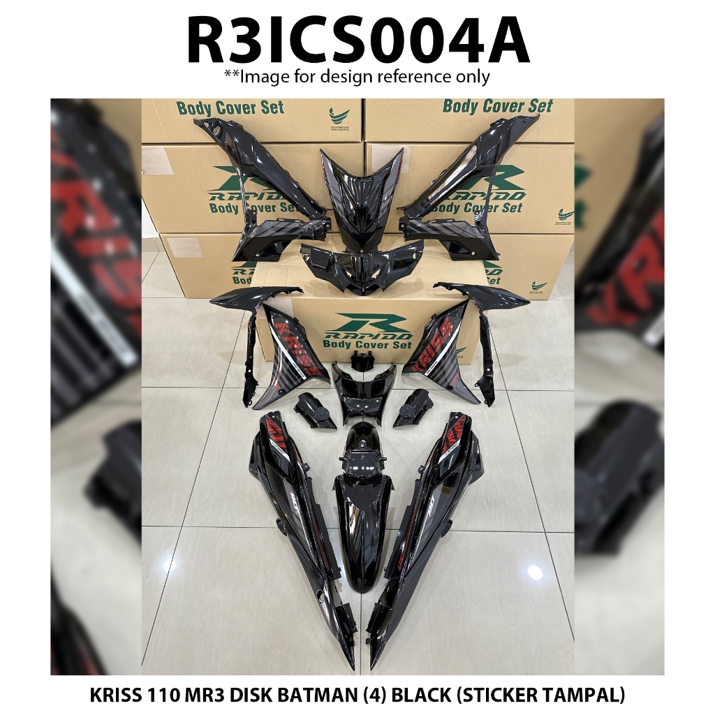 RAPIDO Cover Set MODENAS Kriss 110 Mr3 Drum Disk Batman (4) Black Coverset Sticker Tampal Stripe Tampal Body Cover