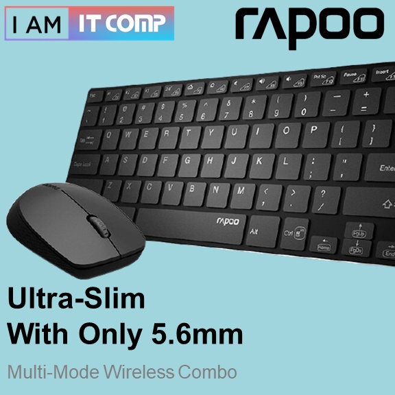 RAPOO 9000M Multi-Mode Ultra-Slim Wireless Bluetooth Combo Mouse & Keyboard / Multiple Devices / 9 months battery life