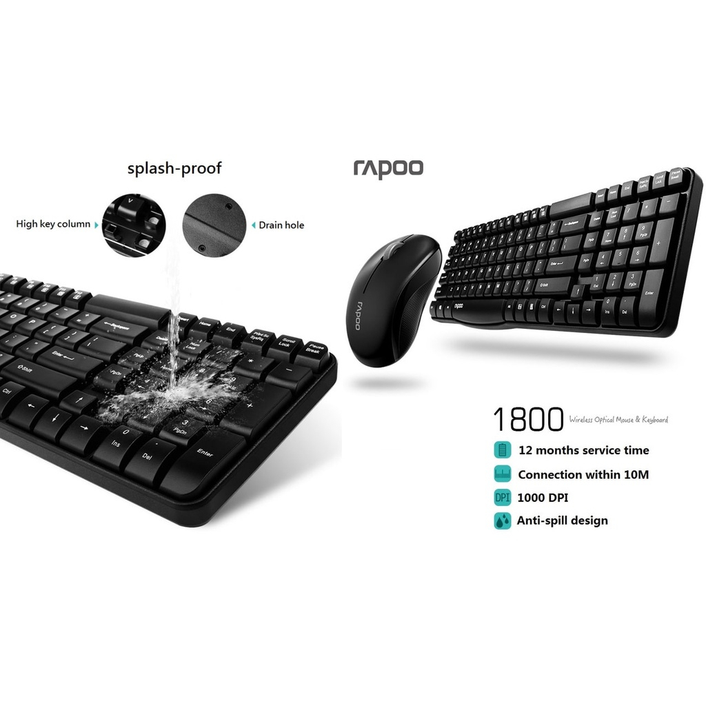 RAPOO X1800S WIRELESS COMBO KEYBOARD & MOUSE (WHITE / BLACK)