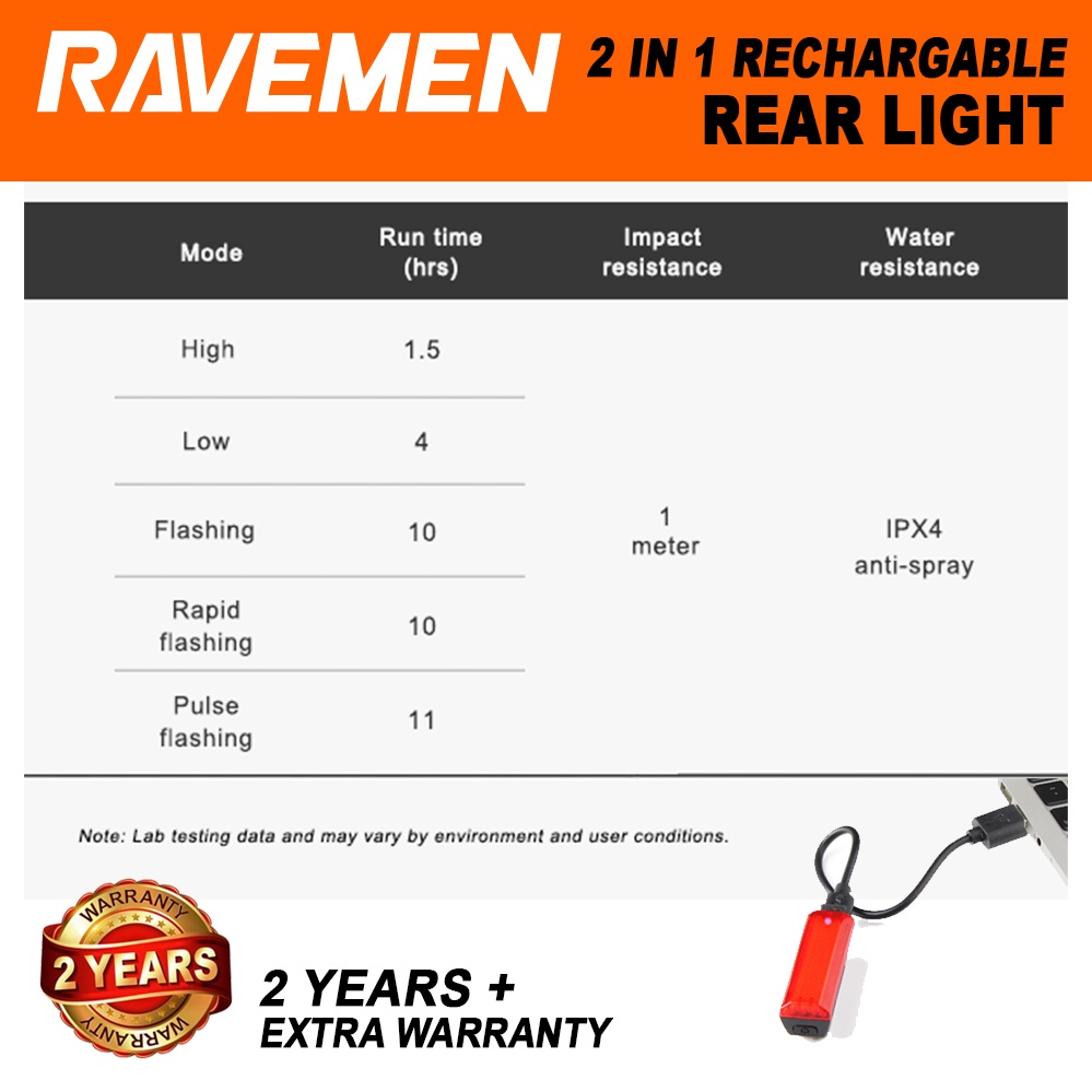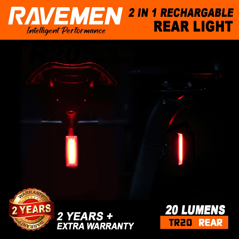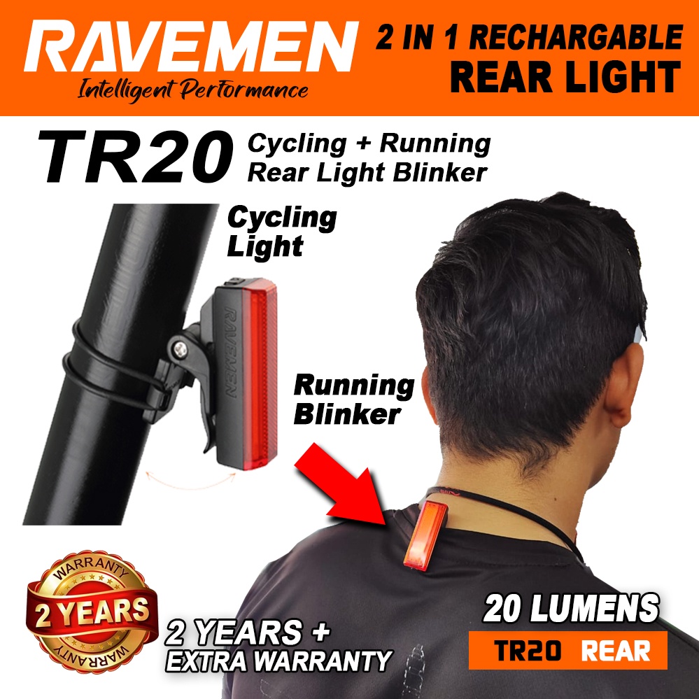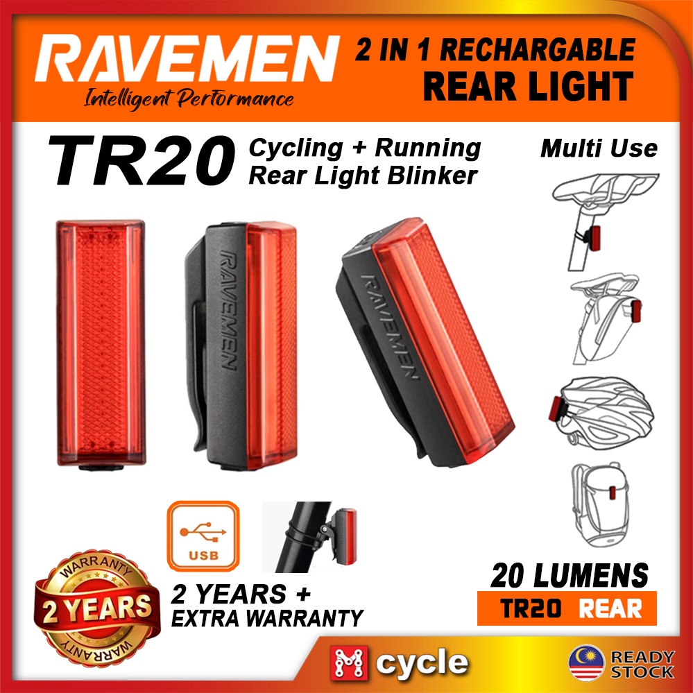 RAVEMEN TR20 Bicycle Rear Light Running Blinker Road Bike MTB Hazard Rechargable Tail Light Lampu Belakang Basikal