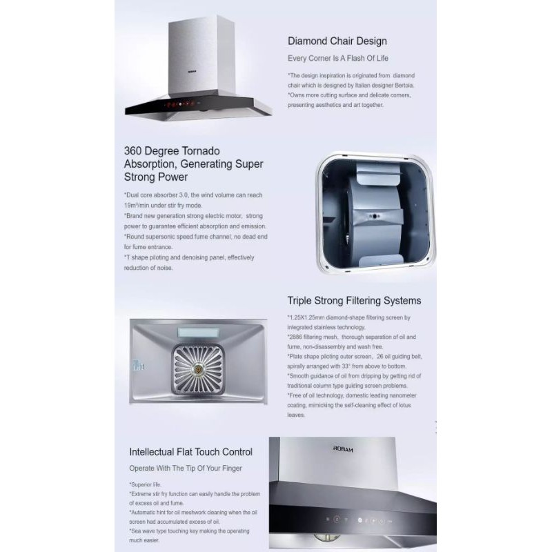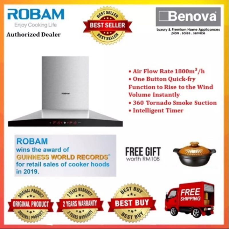 RAYA PROMO ROBAM 1800m3/h high suction power cooker hood-Model:A818