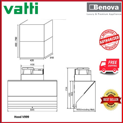 CNY SALES Vatti Rose Gold 2500m3/h suction power hood- V999(Freegift)